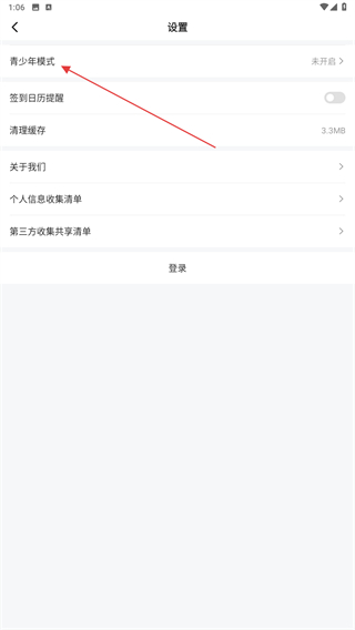 3、在設(shè)置的界面內(nèi),點擊青少年模式的按鈕。