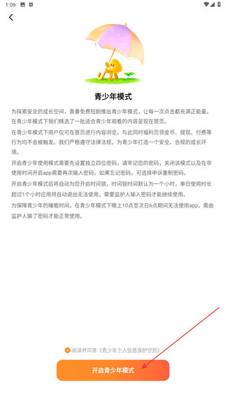 4、了解該模式的規(guī)則后,點擊開啟青少年模式即可。