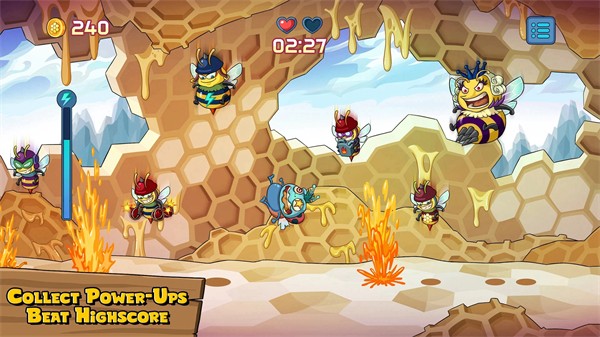 轟炸機(jī)黃蜂手游是一款卡通風(fēng)格的戰(zhàn)斗類游戲,玩家將會(huì)在游戲中扮演瓢蟲雅各布部族的一個(gè)小兵,由于雅各布打擾了大黃蜂女王睡美容覺,大黃蜂部族決定對(duì)瓢蟲部族實(shí)施戰(zhàn)斗侵略,玩家需要使用自己的戰(zhàn)斗能量來(lái)攻擊這些入侵的大黃蜂,并收集戰(zhàn)斗中的一些金幣,以購(gòu)買足夠的戰(zhàn)斗裝備,實(shí)施戰(zhàn)斗反抗。