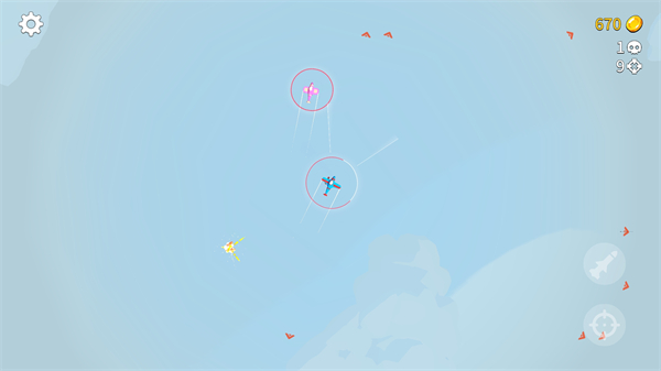 1、選擇自己喜歡的戰(zhàn)斗機(jī)型號,每架飛機(jī)都擁有獨(dú)特的屬性和技能;