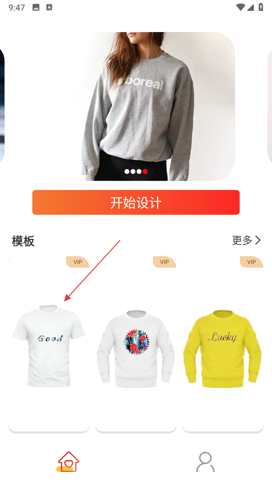 1、打開服裝設計App,在首頁中選擇想要設計的服裝模板,點擊模板進入設計頁面。