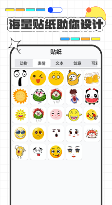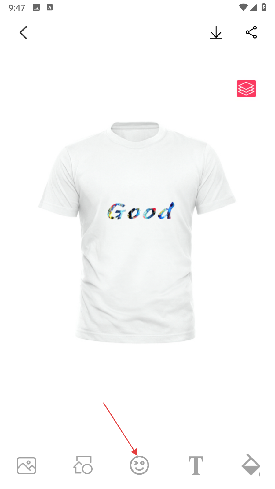 2、進入T恤設計界面后,點擊底部的表情圖標,打開貼紙選擇頁面。