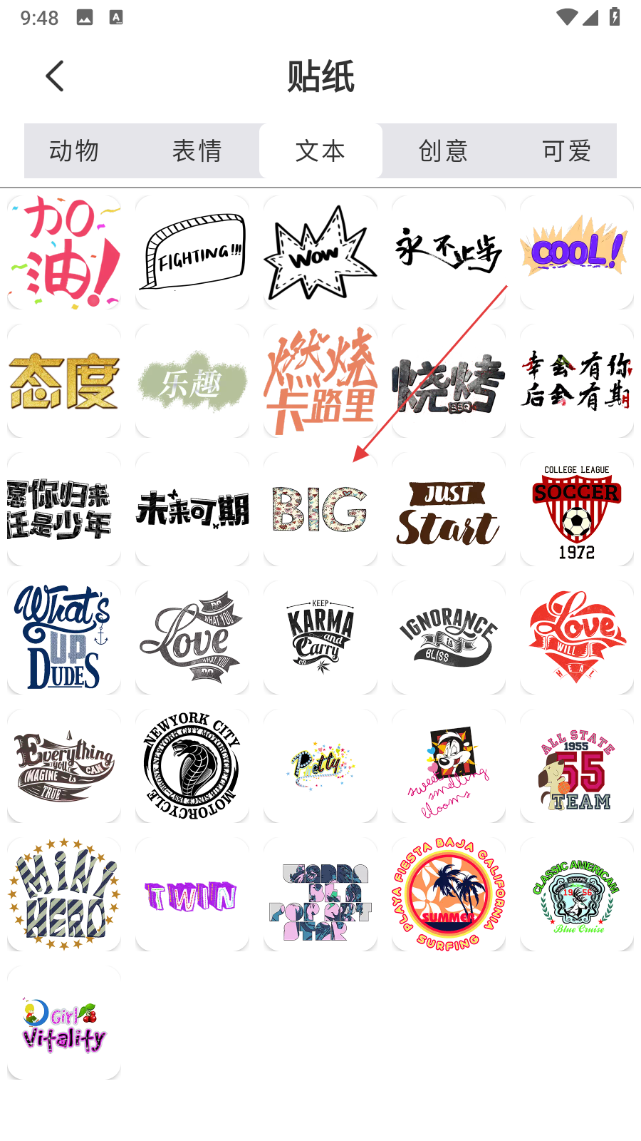 3、在貼紙選擇頁面中,挑選喜歡的貼紙,點擊該貼紙將其添加到T恤上。