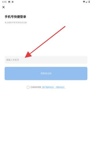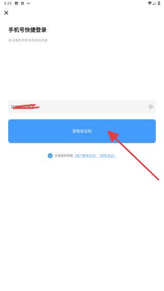 2、在輸入框中輸入要登錄的手機(jī)號(hào),并點(diǎn)擊獲取驗(yàn)證碼。