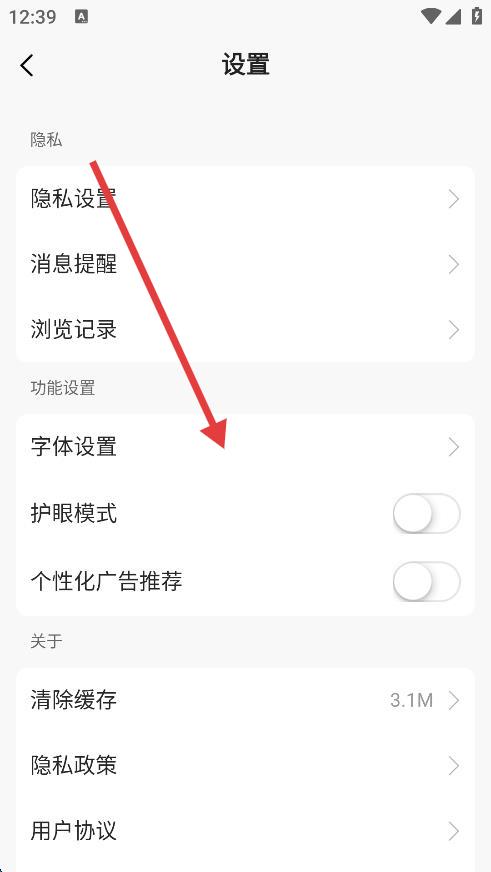 3、進(jìn)入設(shè)置頁(yè)面后,找到字體設(shè)置選項(xiàng)并點(diǎn)擊。