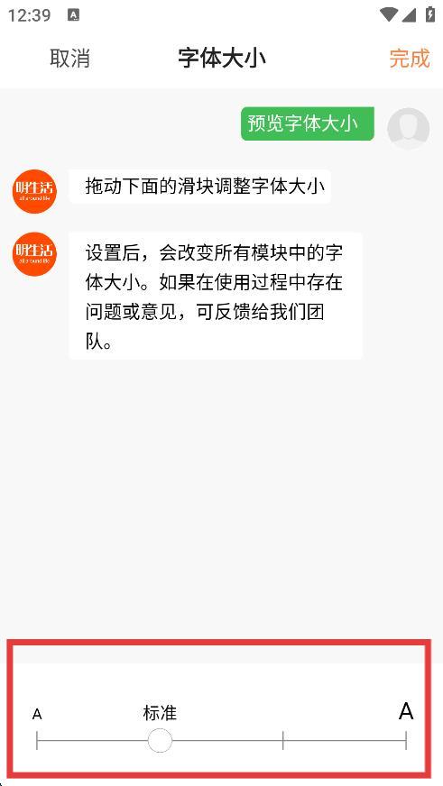 4、通過(guò)拖動(dòng)下方的滑塊調(diào)整字體大小,點(diǎn)擊完成即可。