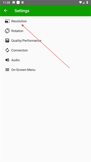 3、在設(shè)置頁(yè)面,點(diǎn)擊Resolution選項(xiàng),即可進(jìn)入該頁(yè)面。