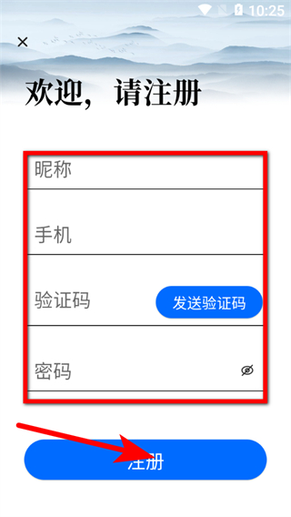 4、輸入昵稱、手機(jī)、驗(yàn)證碼、設(shè)置密碼后點(diǎn)擊注冊,即可完成龍的天空賬號注冊。