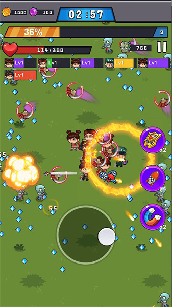游戲里有大量的敵人是會不斷的靠近我們的,需要我們快速的使用武器和技能來將其消滅,得到大量的經驗,提升等級,增加自身的屬性,迎接新的任務和挑戰(zhàn),關卡里面有大量的道具可以收集的,合理的運用道具來增加不同的技能,一瞬間無敵,增加防御力,提升移速等,可以幫助我們快速的消滅大量的敵人,擊敗不同的BOSS,成為割草達人。