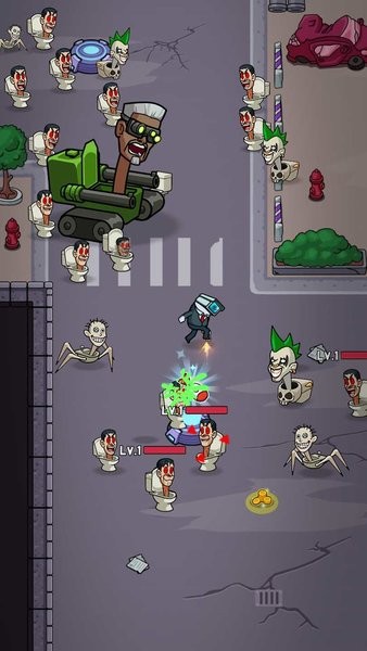游戲的操作是非常的簡(jiǎn)單的,只需要我們不斷的操作武器來(lái)進(jìn)行射擊即可,要及時(shí)的避開(kāi)敵人的攻擊,尋找合適的位置來(lái)進(jìn)行輸出,快速的消滅關(guān)卡的全部敵人,游戲里面會(huì)隨機(jī)出現(xiàn)不同的道具和武器,可以及時(shí)的收集,來(lái)提升自己的火力輸出能力,才能更好的應(yīng)對(duì)不同的馬桶人怪物,解鎖新的模式來(lái)游玩,成為里面最后的生存專家。