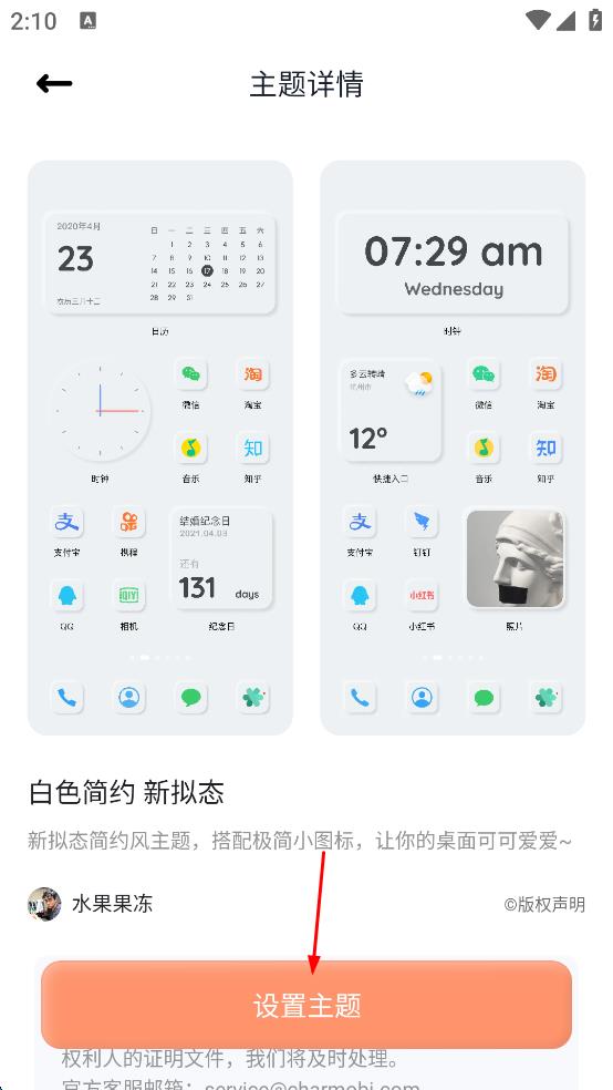 4、在主題詳情頁面,點(diǎn)擊“設(shè)置主題”按鈕,按照提示完成操作,將所選主題應(yīng)用到設(shè)備上。