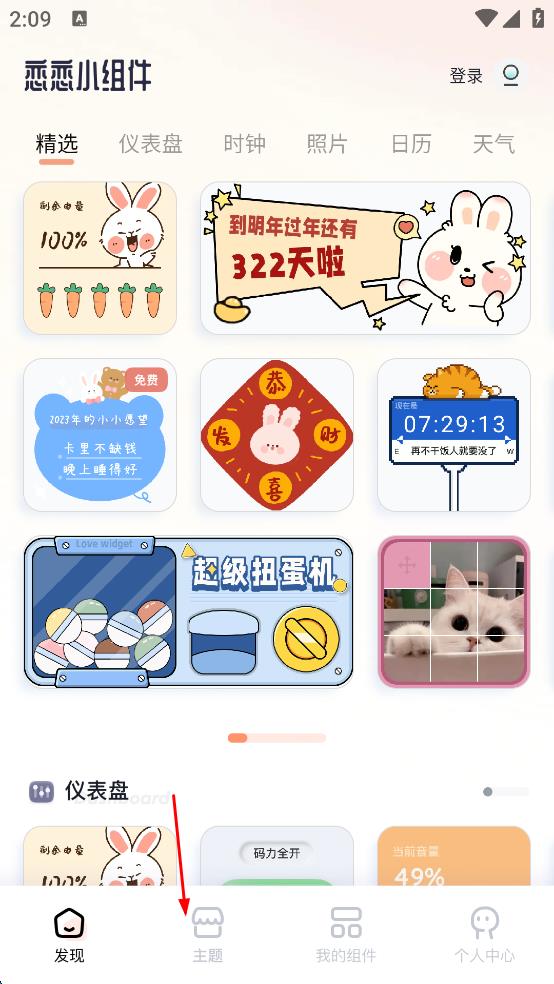 2、在軟件主界面,點(diǎn)擊底部的“主題”選項(xiàng),進(jìn)入主題頁面。