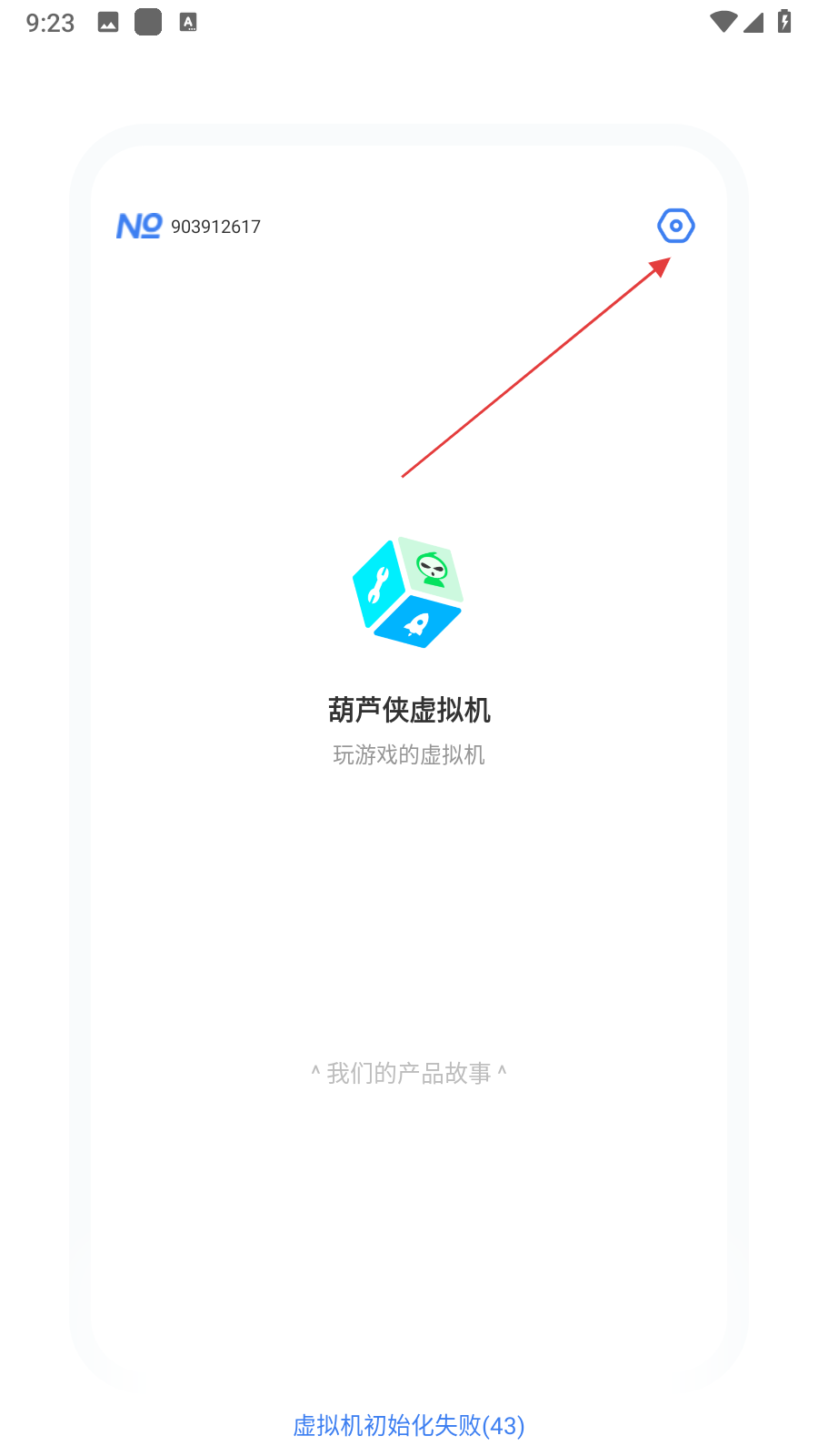 1、打開葫蘆俠虛擬機APP,點擊界面右上角的設置圖標,進入虛擬機設置頁面。