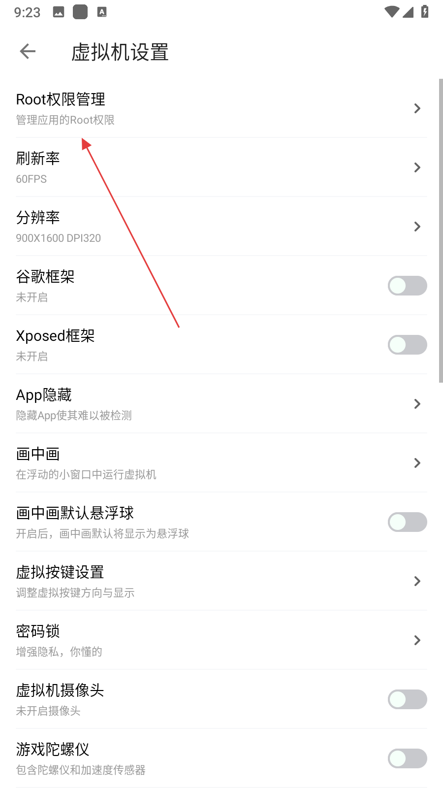 2、在虛擬機設置頁面中,找到并點擊Root權限管理選項。