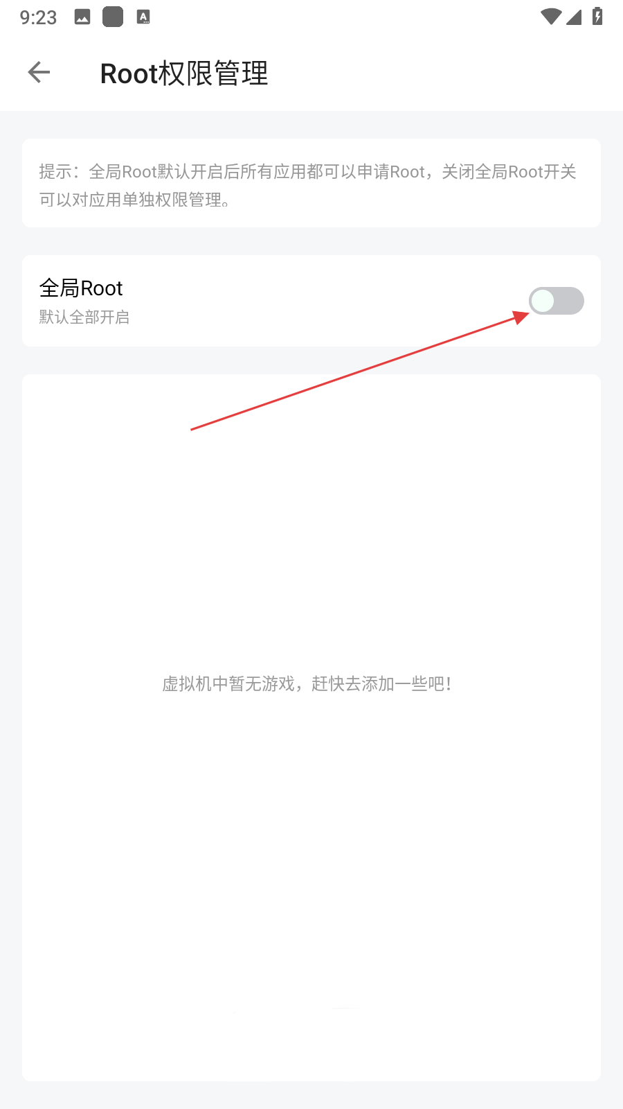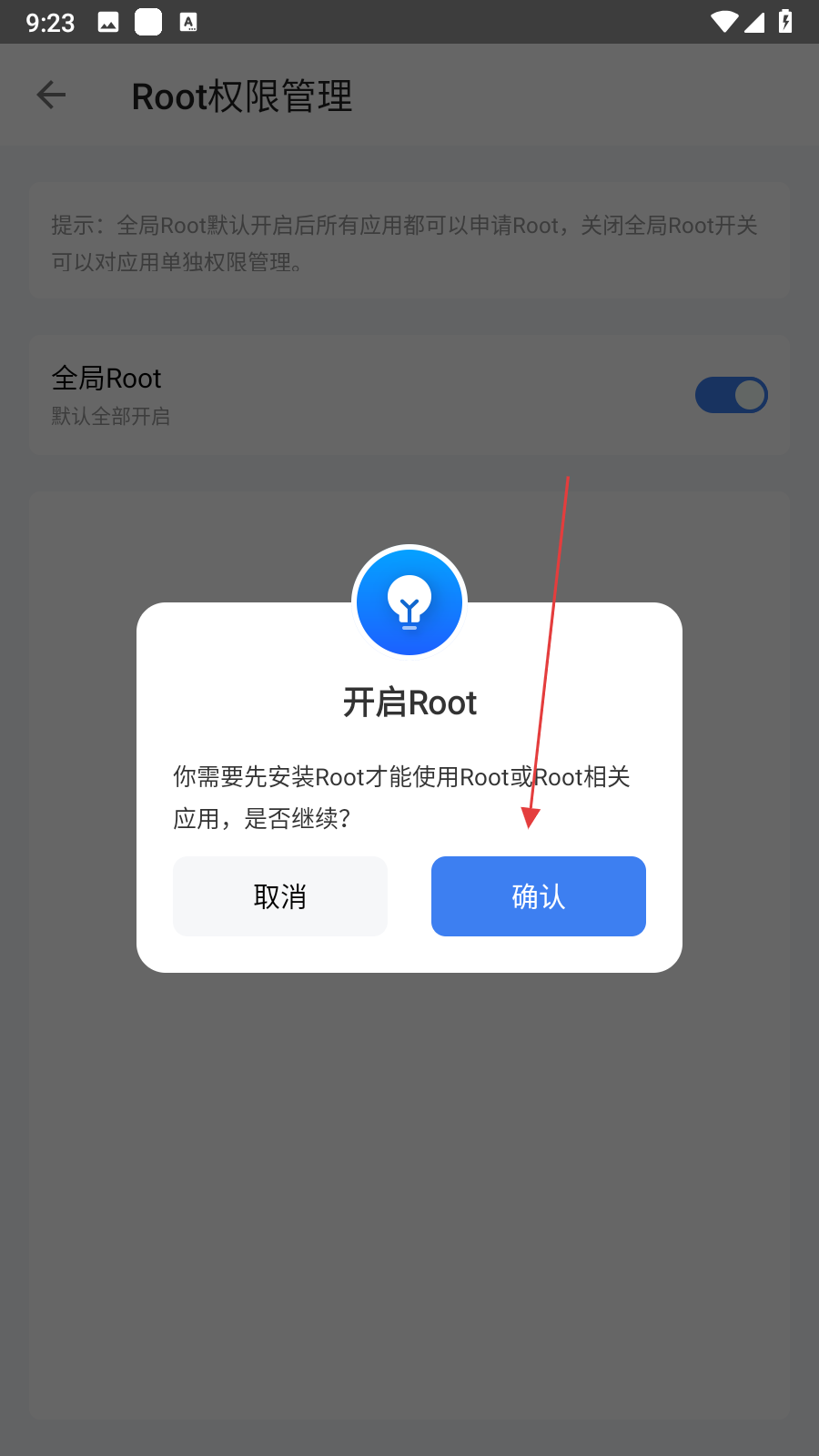 4、安裝完成后,在Root權限管理頁面中,找到全局Root開關并將其打開。