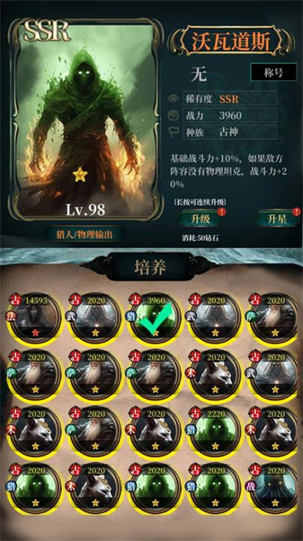 游戲的畫面全部采用黑暗的風(fēng)格塑造的,游玩起來極具挑戰(zhàn),需要我們不斷的模擬氪金來抽取不同的人物來進(jìn)行組建不同的隊伍,才能在遇到強(qiáng)敵的時候,快速的將其消滅,不同的人物還有不同的技能可以升級,可以不斷的抽取不同的材料來進(jìn)行強(qiáng)化,不斷的觸發(fā)新的故事和劇情來游玩,一步一步來了解游戲的世界觀和最后的任務(wù)。