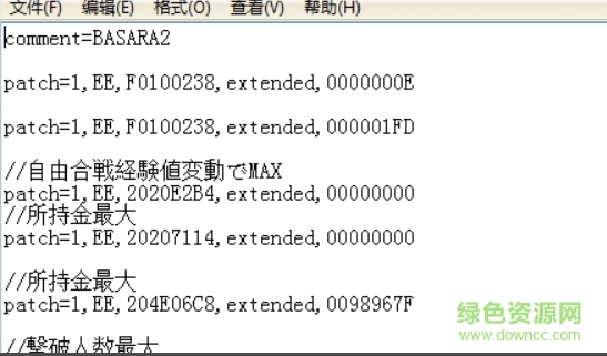 3.接下來(lái)可以在網(wǎng)上找到金手指代碼粘貼進(jìn)去,戰(zhàn)國(guó)BASARA2日版// 后面是沒(méi)使用的代碼,刪除了就是要使用的 (是游戲名稱(chēng) 也可以不要)。