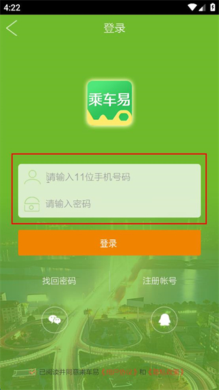 4、勾選“已閱讀并同意乘車易用戶協(xié)議和隱私政策,點(diǎn)擊“登錄”按鈕,完成登錄操作。