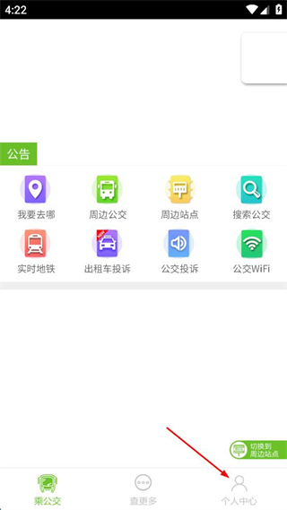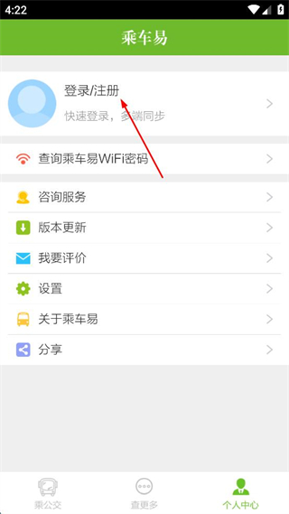 1、打開乘車易類軟件,點(diǎn)擊右下角“個(gè)人中心”按鈕,進(jìn)入個(gè)人中心界面。