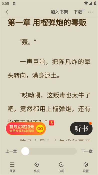 d、離線下載,需依賴網(wǎng)絡(luò),即使在無網(wǎng)絡(luò)環(huán)境下,用戶也能夠流暢地閱讀自己喜歡的書籍。