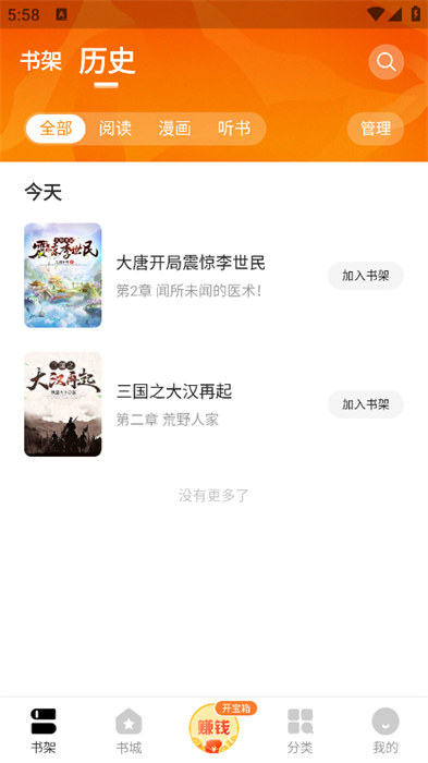 3、還能夠看到自己小說資源內(nèi)容的歷史閱讀記錄,這樣可以繼續(xù)去進行小說資源內(nèi)容的閱讀;