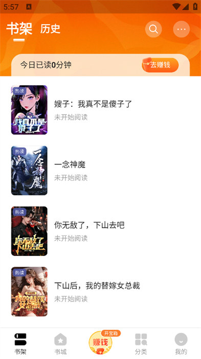 1、可以在書架里面看到自己添加到書架里面的小說資源的內(nèi)容,方便用戶們?nèi)ミM行閱讀的操作;