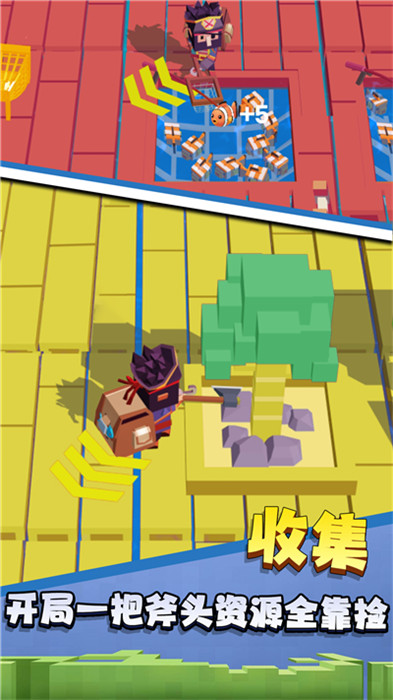 1、開(kāi)局是最難的,也是最有趣的,用你手中的斧子去島上搜集各種資源;