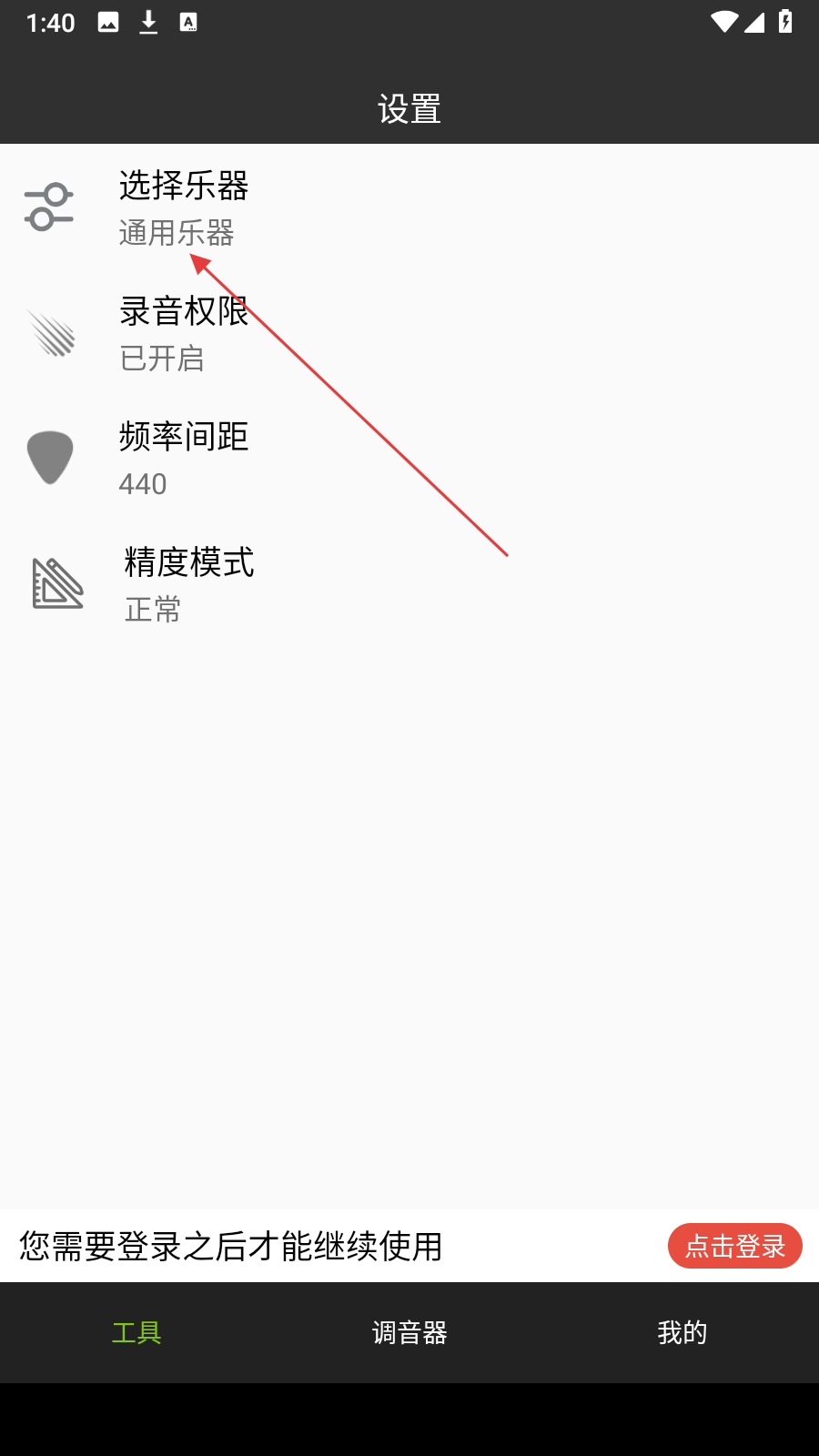 1、打開小熊調(diào)音器應(yīng)用,點(diǎn)擊設(shè)置界面,找到選擇樂器這一選項(xiàng),點(diǎn)擊切換樂器。