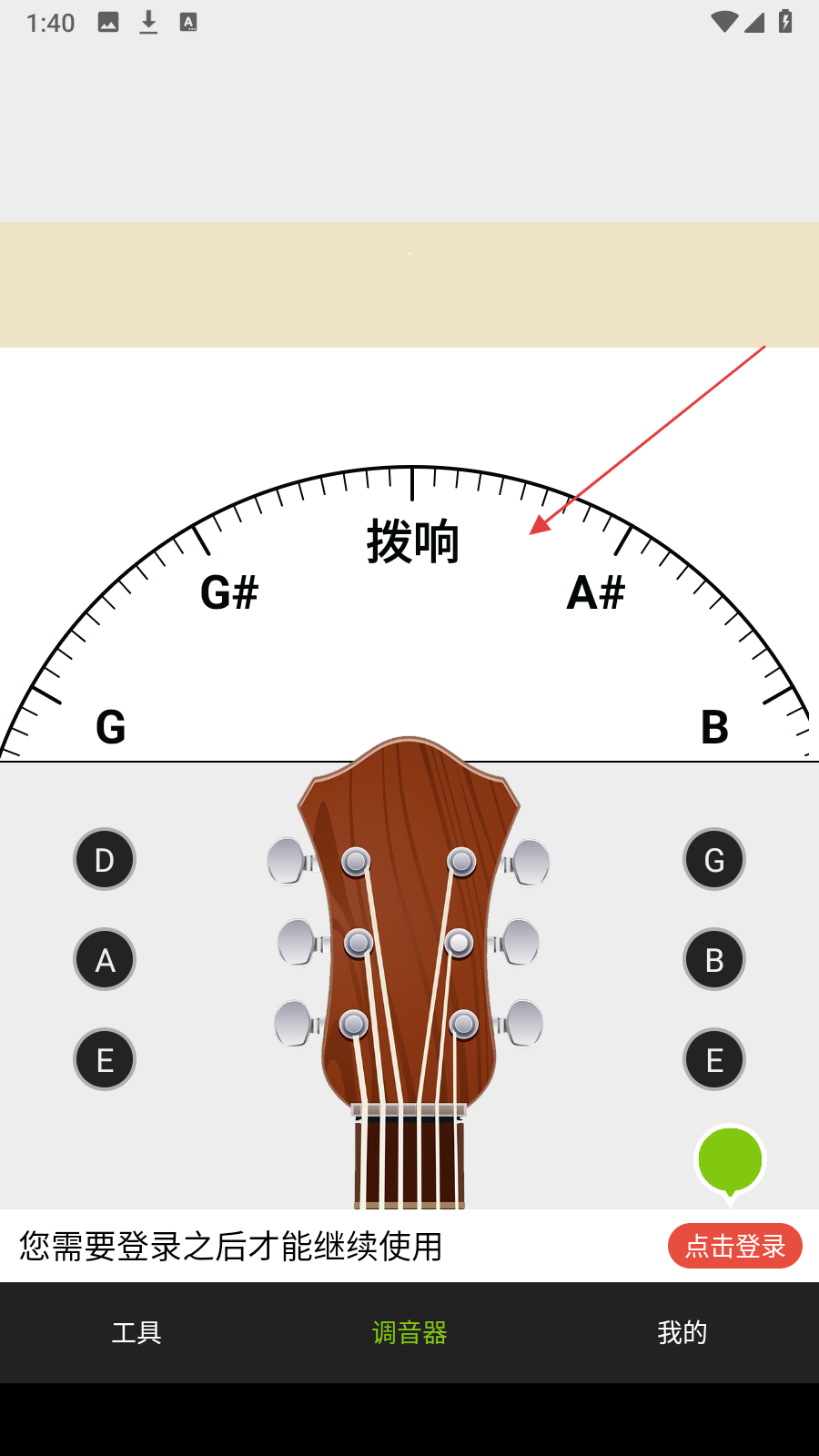 3、調(diào)音器屏幕上會(huì)顯示對(duì)應(yīng)的音名和指針,根據(jù)指針位置判斷音的高低。
