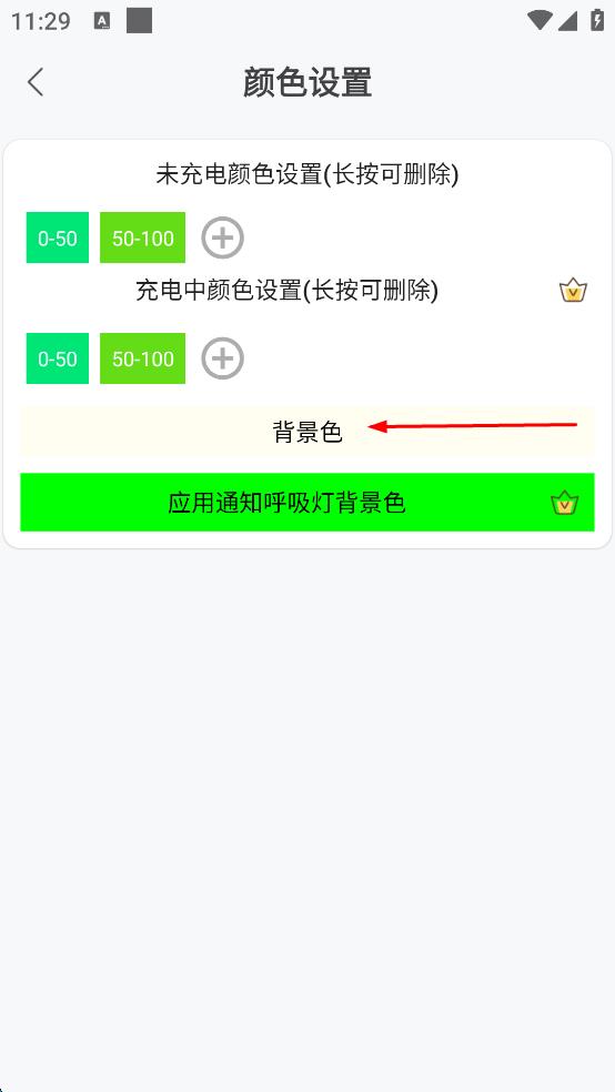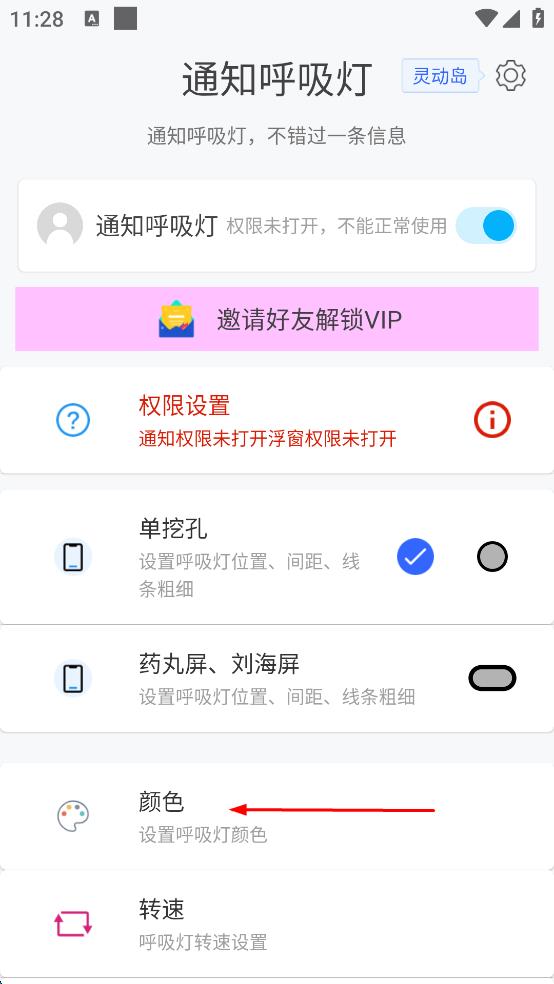 1、打開通知呼吸燈軟件,進入后在頁面中找到“顏色”選項,點擊“顏色”選項,進入到顏色設(shè)置頁面。