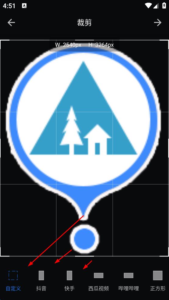 3、在裁剪頁(yè)面,可選擇自定義、抖音等尺寸模板,調(diào)整裁剪框范圍,完成后進(jìn)行后續(xù)創(chuàng)作操作 。
