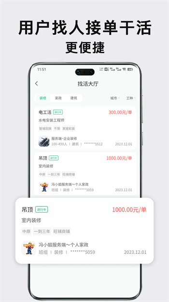 眾聯(lián)宜居服務(wù)端最新版是一款能夠幫助用戶進(jìn)行裝修和家政一站式接單服務(wù)的應(yīng)用程序,它為你提供了一個(gè)便捷的平臺(tái),方便輕松發(fā)布和接收家政服務(wù)訂單,無(wú)論是需要保潔、搬運(yùn)還是家電維修等家政服務(wù),它都能滿足我們的需求,通過(guò)軟件,還可發(fā)布自己的需求,并得到及時(shí)響應(yīng),我們只需選輕輕一動(dòng)手指,就能享受到貼心的家政服務(wù),不再需要費(fèi)時(shí)費(fèi)力地尋找可靠的家政服務(wù)員,快來(lái)體驗(yàn)下載它,使我們的家政生活變得簡(jiǎn)單、高效。