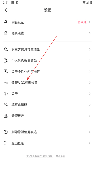 3、在設(shè)置頁(yè)面,點(diǎn)擊像塑AIGC標(biāo)識(shí)設(shè)置。