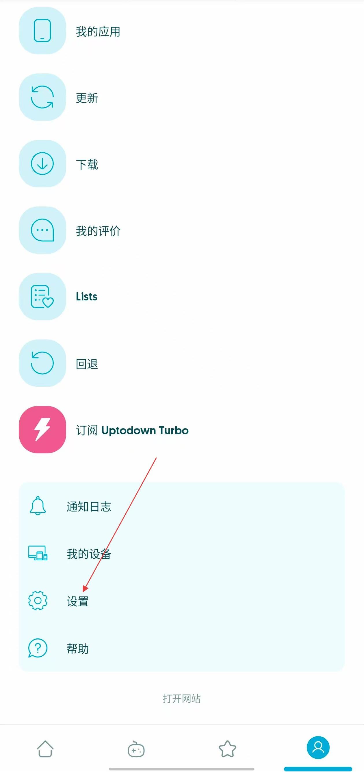 1、打開Uptodown應(yīng)用,點擊界面右下角的個人中心圖標(biāo),進入個人中心頁面。