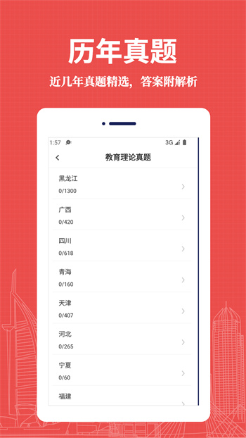 4、極致的考試體驗(yàn),各個地區(qū)的教育理論真題軟件里都有,方便用戶查找教育試題。