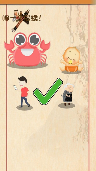 瘋狂頭腦最新版是一款適合兒童的益智休閑類游戲,在游戲中,你將面對(duì)各種不同的關(guān)卡,每個(gè)關(guān)卡中會(huì)呈現(xiàn)出不同的畫面,玩家需要運(yùn)用自己的邏輯思維能力和判斷能力,逐漸掌握合適的對(duì)戰(zhàn)規(guī)律,比如,玩家需要選擇畫面中最矮的一位人,或選出爬的最慢的那只烏龜,或選擇出長(zhǎng)方形等,每個(gè)關(guān)卡都有不同的玩法,畫面簡(jiǎn)約卻不失精致。