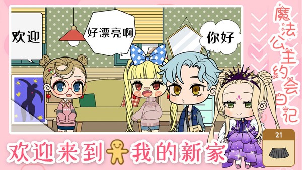 魔法公主約會日記是戀愛約會題材的換裝游戲,游戲里面可以自由的選擇不同的角色來進行打扮,可以跟不同的人物來進行約會,不斷的完成新的任務來提升親密度,游戲的玩法是非常的簡單的,任何人都可以快速的上手。