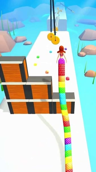 -【合理規(guī)劃】:需通過熟悉關(guān)卡的設(shè)計和特點,合理規(guī)劃跑酷路線,躲避障礙物,盡可能收集更多的美人魚道具;