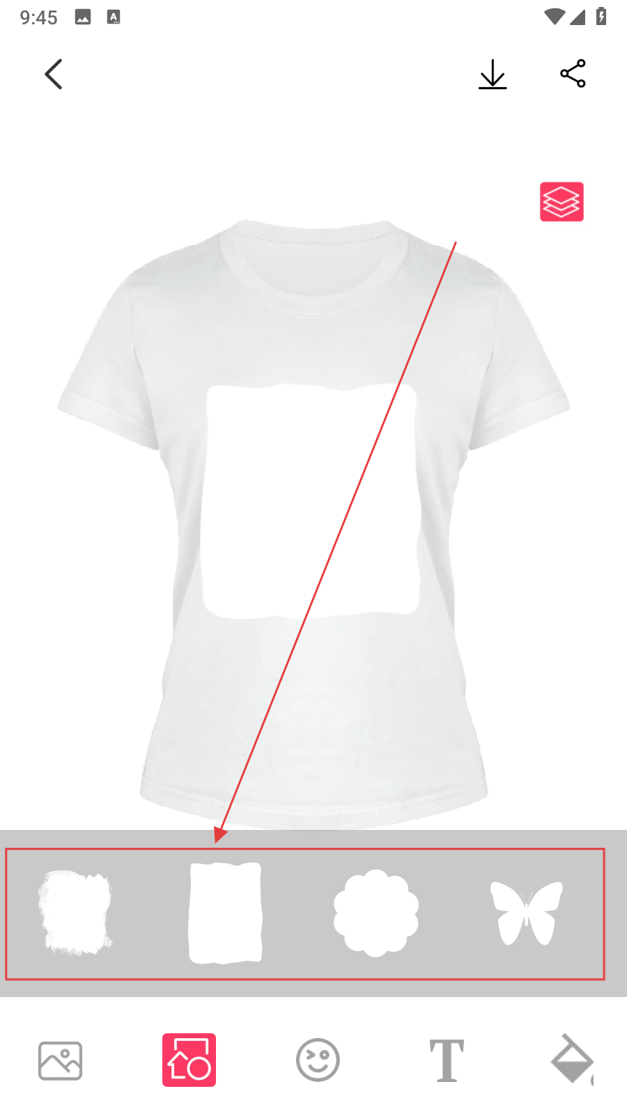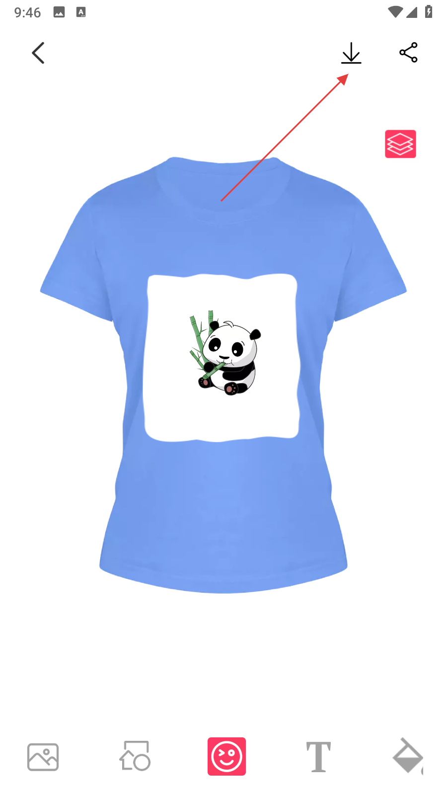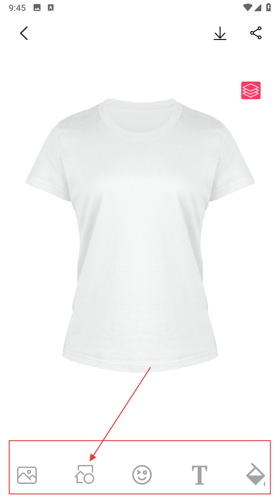 2、進入設計界面后,利用App提供的工具,對服裝進行設計,點擊下方第二個按鈕。
