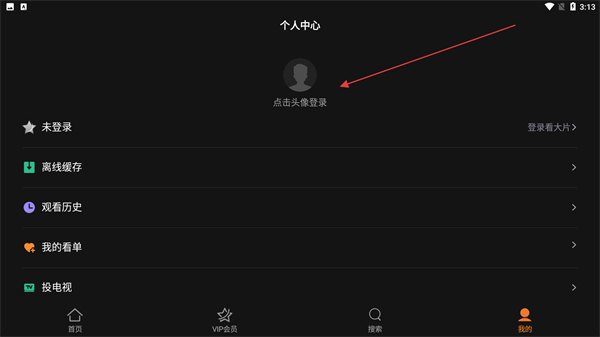 2、進(jìn)入個(gè)人中心的界面內(nèi),點(diǎn)擊正上方頭像登錄的區(qū)域。