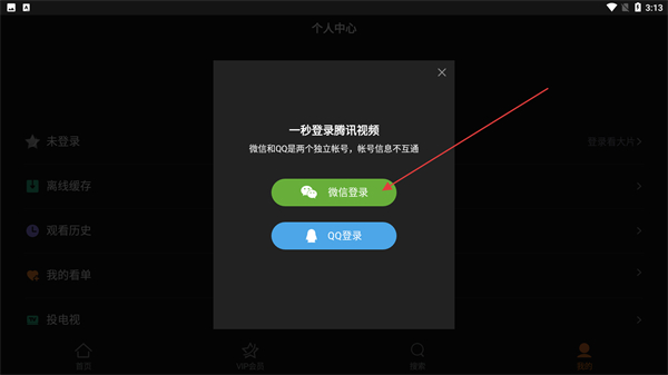 3、點(diǎn)擊后,界面彈出登錄的方式,點(diǎn)擊微信登錄的按鈕。