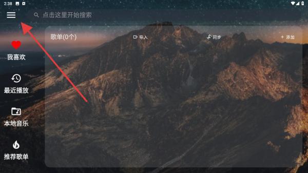 1、打開速悅音樂APP,進(jìn)入到首頁內(nèi),點(diǎn)擊左上角三個(gè)橫線的功能圖標(biāo)。