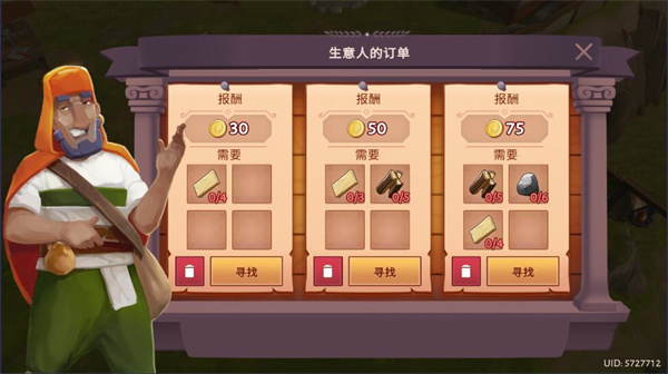 2、在生意人的訂單中,可以看到右邊這個大單是75金幣報酬,那就這個了;