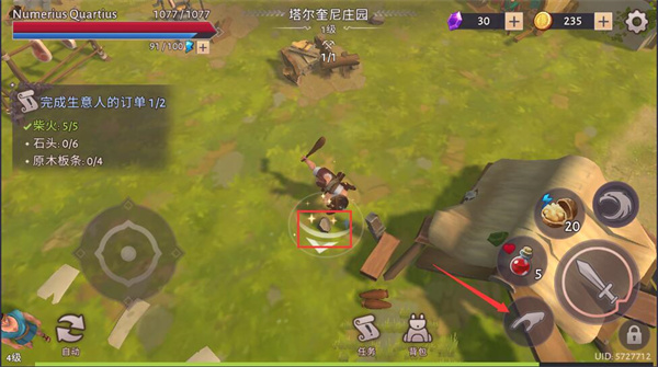 4、在地上可以看到閃閃發(fā)光的石頭,點擊將其撿起來;