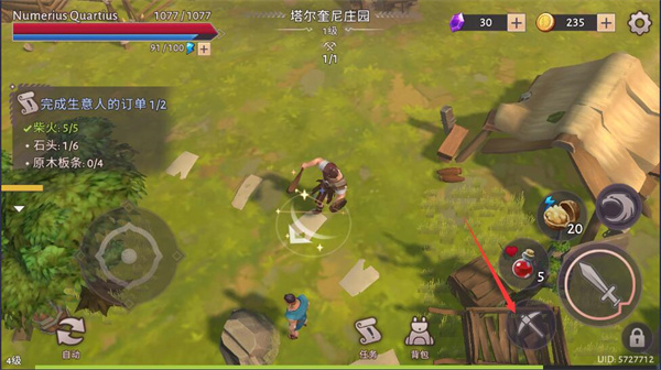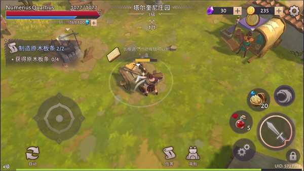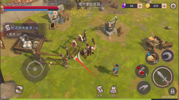 3、根據(jù)指引,首先需要修好中間的工作臺,根據(jù)提示去尋找材料;