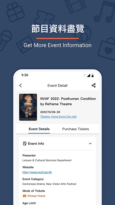 4、查看票場演出詳細(xì)信息,包括演出時間、地點、演出內(nèi)容等,更好地了解演出信息做出決策;