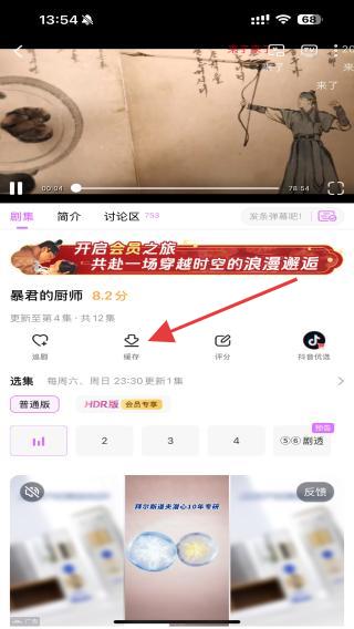 2、在劇集頁面中,找到緩存按鈕,點擊該按鈕。