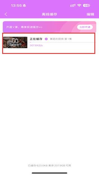 4、設置完成后,緩存會自動開始,可前往我的頁面,查看緩存進度、管理已緩存的視頻。