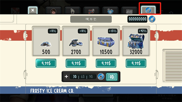 4、可以切換到最后的一個購買貨幣的欄目,然后去進(jìn)行購買,有足夠的貨幣就可以獲得貼紙槍。