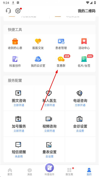 2、在我的頁面中,找到醫(yī)患群選項(xiàng)并點(diǎn)擊進(jìn)入。